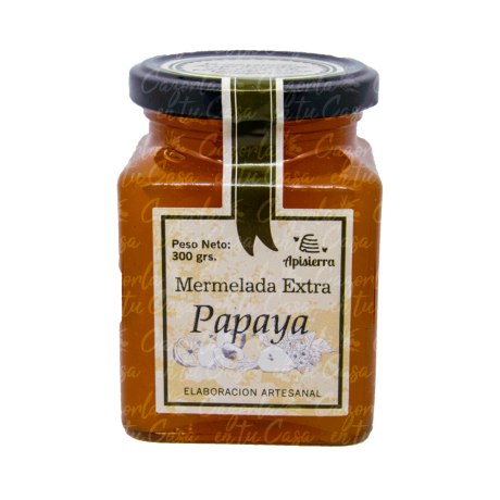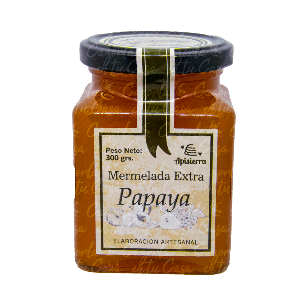 Mermelada elaborada de forma artesanal con fruta de temporada (sin conservantes ni colorantes). \n \nIngredientes: papaya 67 %, azúcar 30 %, limón 3 % y canela.