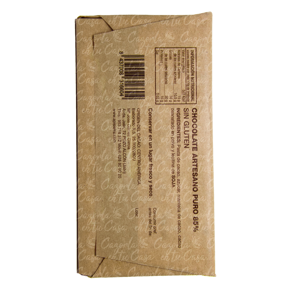 Chocolate Artesano 85 %.