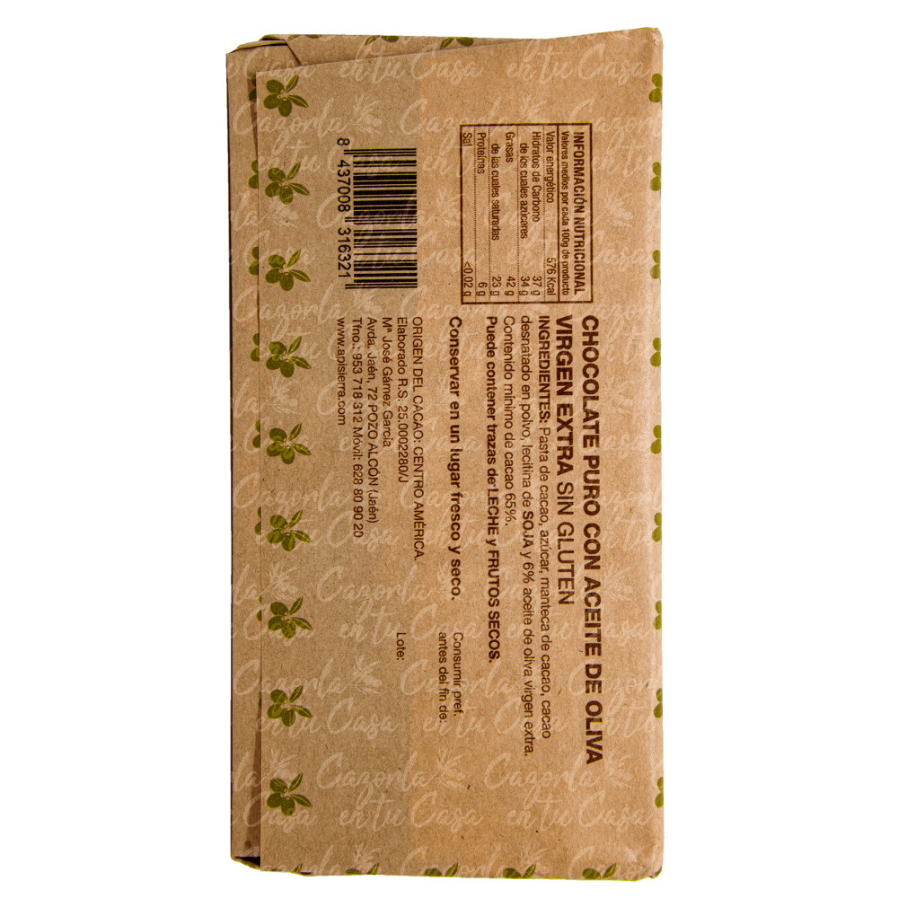 Chocolate Artesano elaborado con Aceite de Oliva Virgen Extra de la Sierra de Cazorla
