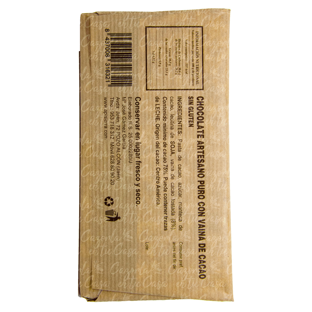 Chocolate Artesano con Miel natural de la Sierra de Cazorla.